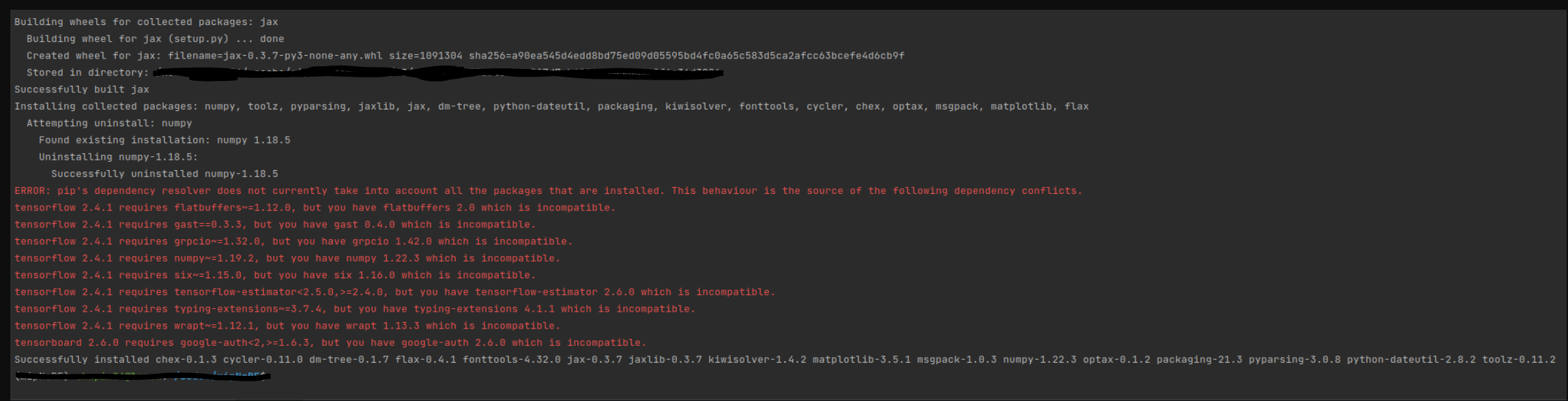 - pip intall flax - jax, jaxlib 등 package 다운로드 중 에러 발생
