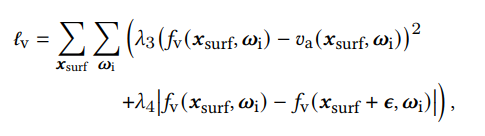 같은 방식으로 다른 MLP를 이용해 reparameterize. optimizaton은 surface normal과 유사하게 다음 loss를 따른다.