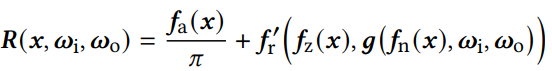 BRDF model = diffuse component(Albedo) + specular SVBRDF. 이 때, specular SVBRDF 는 어떤 surface point x_surf에 대해서도 incoming + outgoing direction으로 정의. 기존 NeRF-like setting에서 BRDF 를 derive 하는 방식 - analytic microfacet model (ex) NeRV)